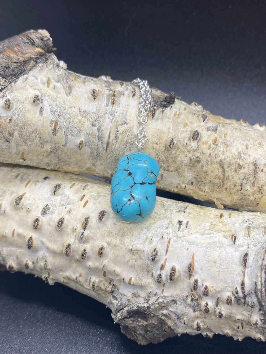 Turqoise howlite pendant suspended from a nickel free silver coloured wire and a lobster clasp.